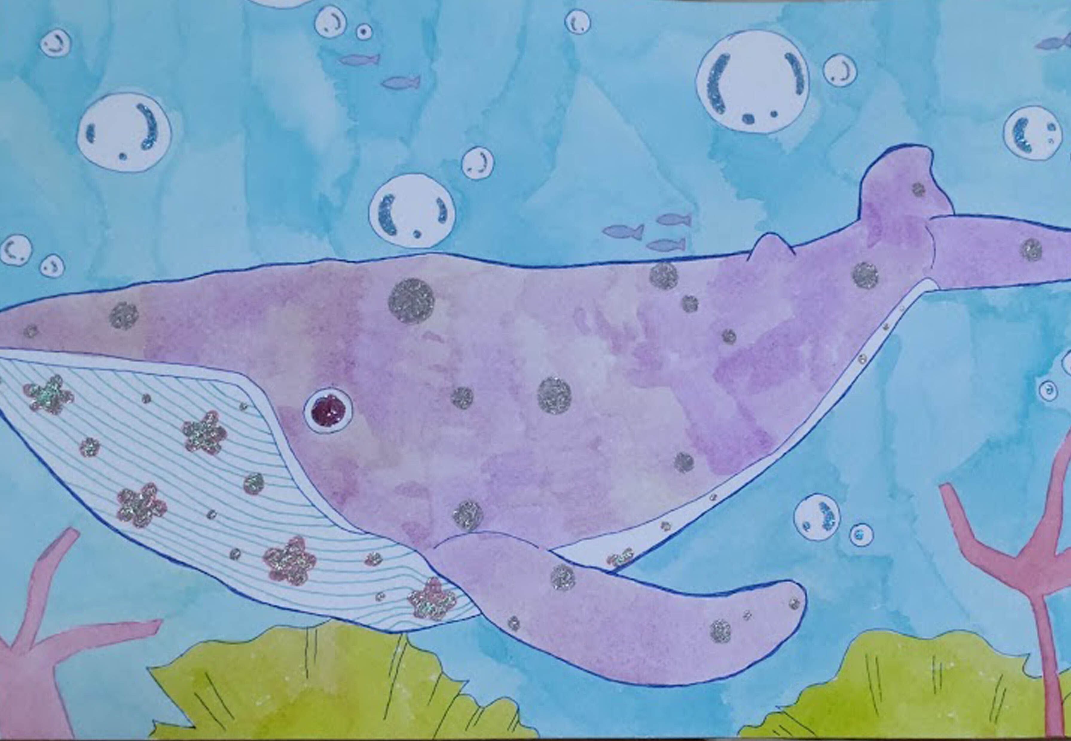 透明水彩+ボールペン+ラメペン+グリッターグルーにて仕上げ。